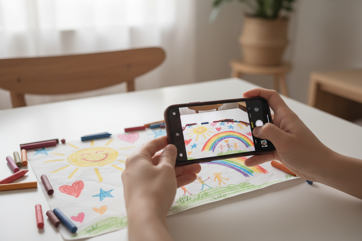 Any drawing works — crayon, marker, pencil.Take a clear photo or scan of your child’s drawing.